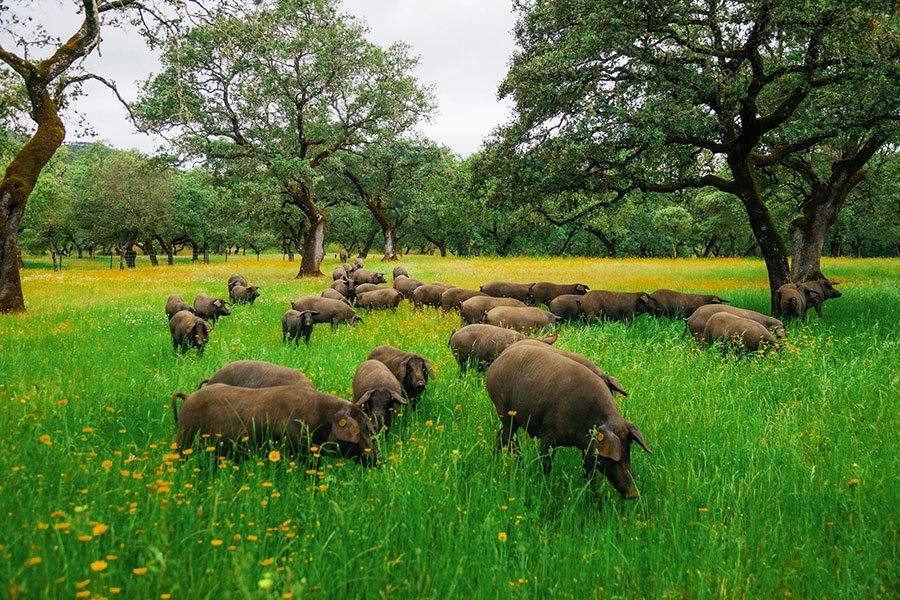 Nos charcuteries Ibériques sont élaborés dans la province de Huelva en Andalousie. Notre producteur, Francisco Cardeno, élève traditionnellement des cochons ibériques et fabrique artisanalement nos charcuteries Ibériques Bellota. Les animaux vivent en semi-liberté dans de vastes forêts de chênes ou ils se nourrissent de produits naturels dont les fameuses Bellota (glands) durant la période de la montanera.